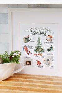 Celebrate the coziness of the holidays with this free Cozy Christmas Essentials free Christmas printable! Perfect for your Christmas decor or Christmas DIY projects.